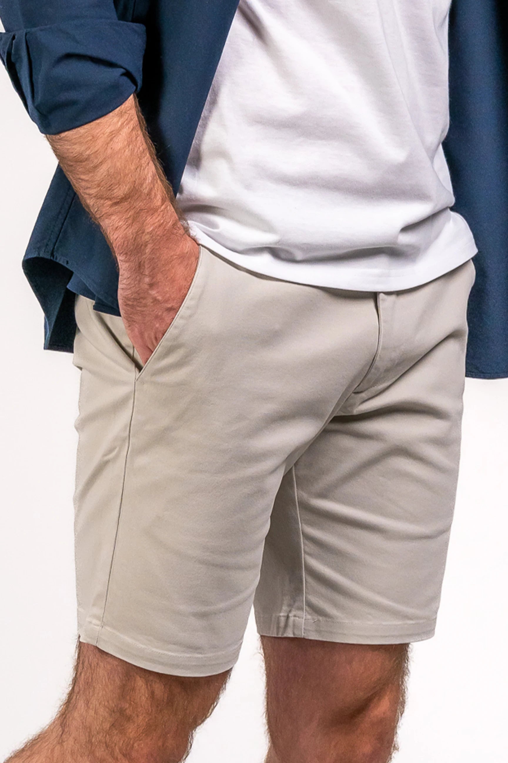Contains: Navy Crew + Biscuit Chino Shorts + White Ankle Socks
